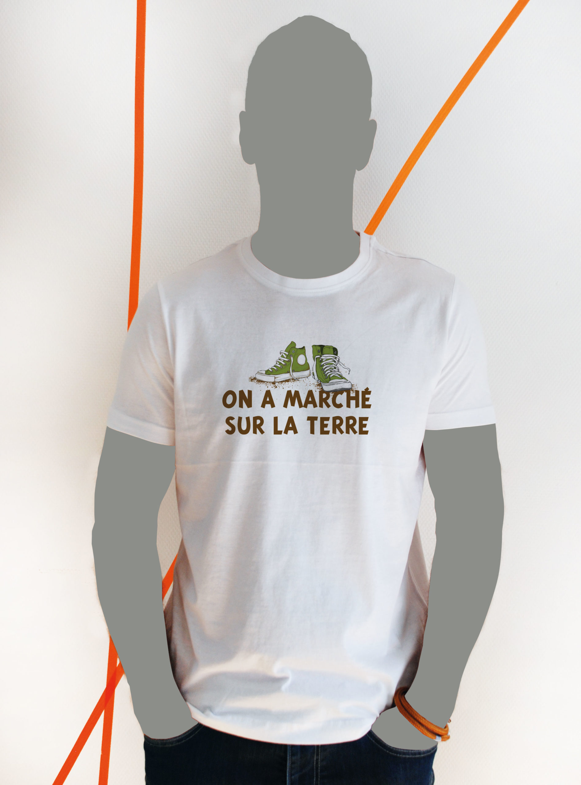T-shirt coton bio col rond couleur blanc. 2 modèles : homme, femme. Existe en vert, bleu, orange, jaune, rouge et violet.